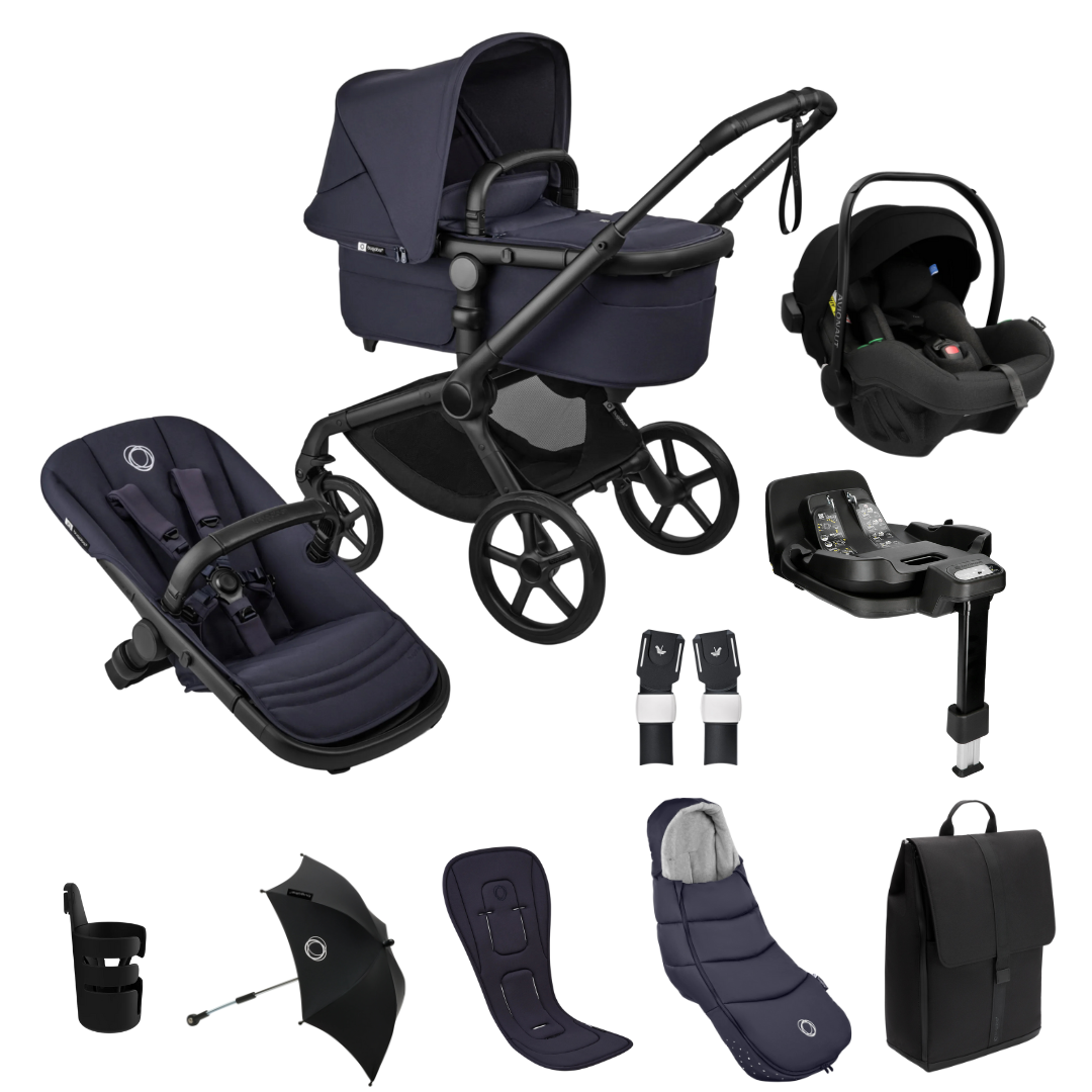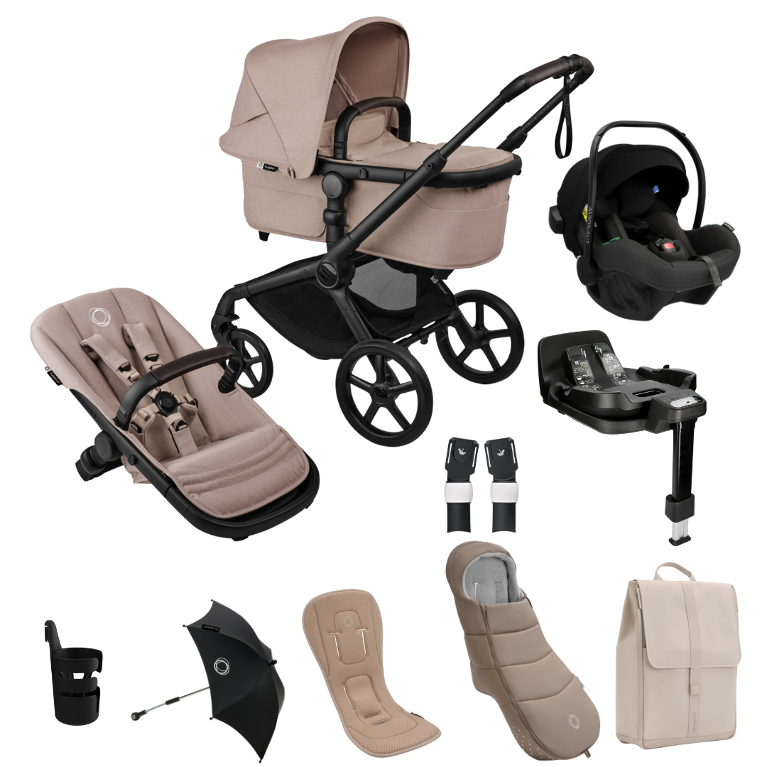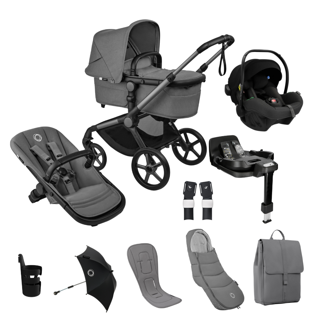 The Fox 5 Renew Complete bundle pairs up your baby pram with everyday must-have accessories to prepare you for your new arrival. Bugaboo Fox 5 Renew carrycot and seat pushchair, Bugaboo footmuff, Bugaboo cup holder, Bugaboo dual comfort seat liner, Bugaboo changing backpack, Bugaboo parasol+