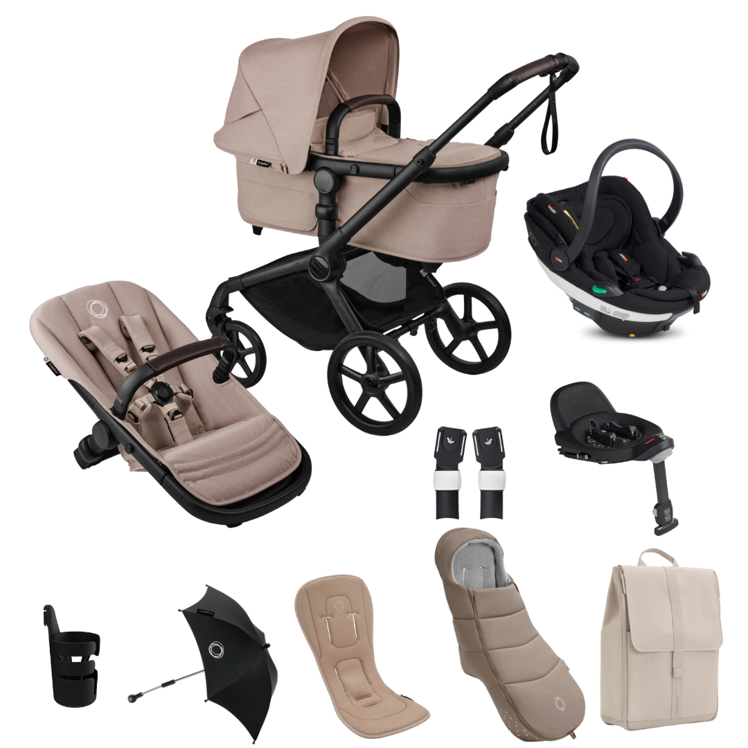The Fox 5 Renew Complete bundle pairs up your baby pram with everyday must-have accessories to prepare you for your new arrival. Bugaboo Fox 5 Renew carrycot and seat pushchair, Bugaboo footmuff, Bugaboo cup holder, Bugaboo dual comfort seat liner, Bugaboo changing backpack, Bugaboo parasol+