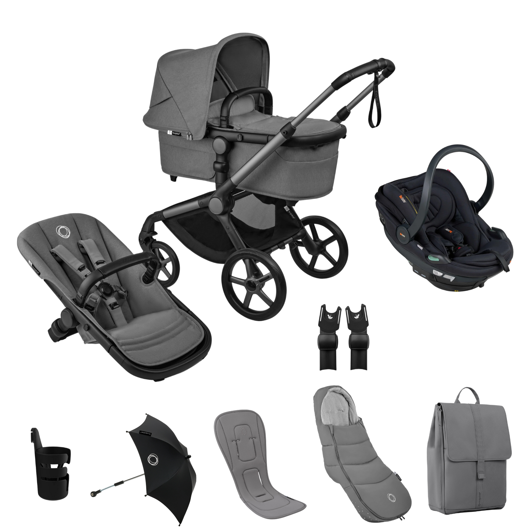 The Fox 5 Renew Complete bundle pairs up your baby pram with everyday must-have accessories to prepare you for your new arrival. Bugaboo Fox 5 Renew carrycot and seat pushchair, Bugaboo footmuff, Bugaboo cup holder, Bugaboo dual comfort seat liner, Bugaboo changing backpack, Bugaboo parasol+