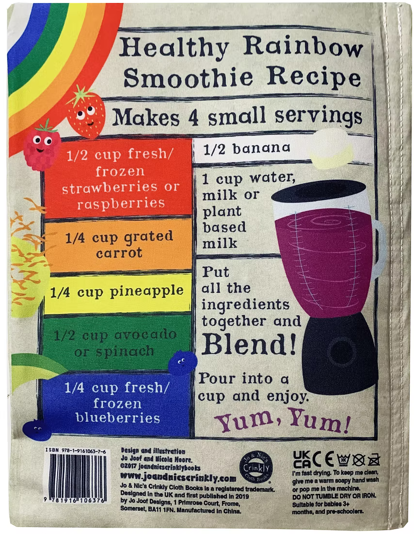 Nursery Times Crinkly Newspaper. Eat a Rainbow. 6 pages of bright fun illustrations and simple text introducing healthy fruit and veg and a recipe for a smoothie.