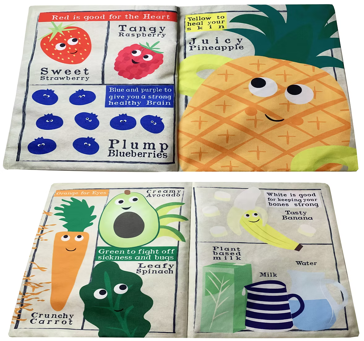 A cute cloth book for babies with crinkly filled pages.