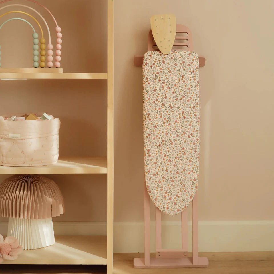 Iron like the greats! With this beautiful wooden ironing board and matching iron, little ones can neatly iron the clothes of their dolls or stuffed animals. The board is foldable, making it easy to store. A perfect addition to role play and a great way to discover household chores through play!