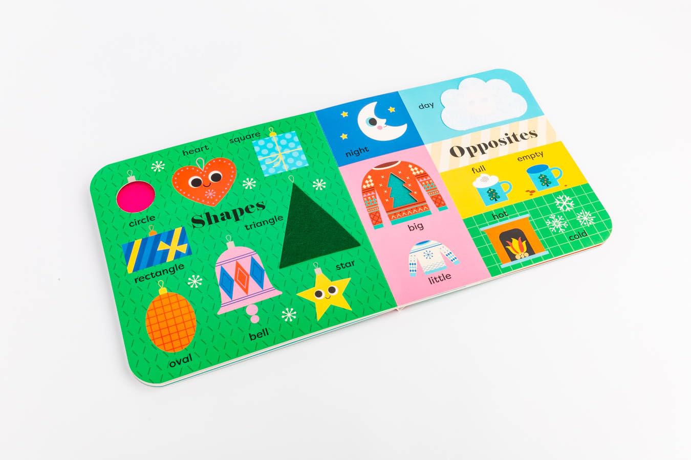 With bright, stylish artwork from Ingela P Arrhenius, this big Christmas-themed playbook is perfect for a first Christmas present or for sharing with older babies and toddlers. How many snowmen can you count? What colour are the presents? What shape are the baubles? And finally, where are you? A large-format board book which introduces early-learning first concepts and encourages interactive play, with 10 soft felt flaps, tactile die-cuts on every page and a surprise mirror ending.