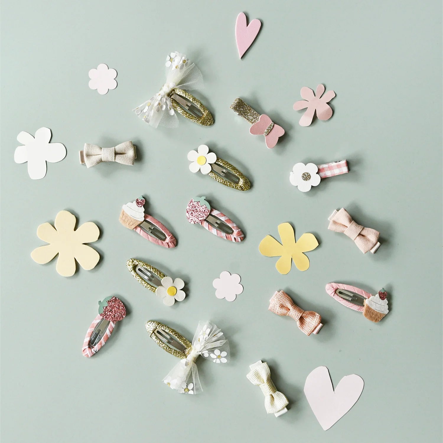 Add a sprinkling of spring daisies to your hair with our gorgeous oversized tulle bows, secured upon two shimmering grosgrain ribbon wrapped snap clips.