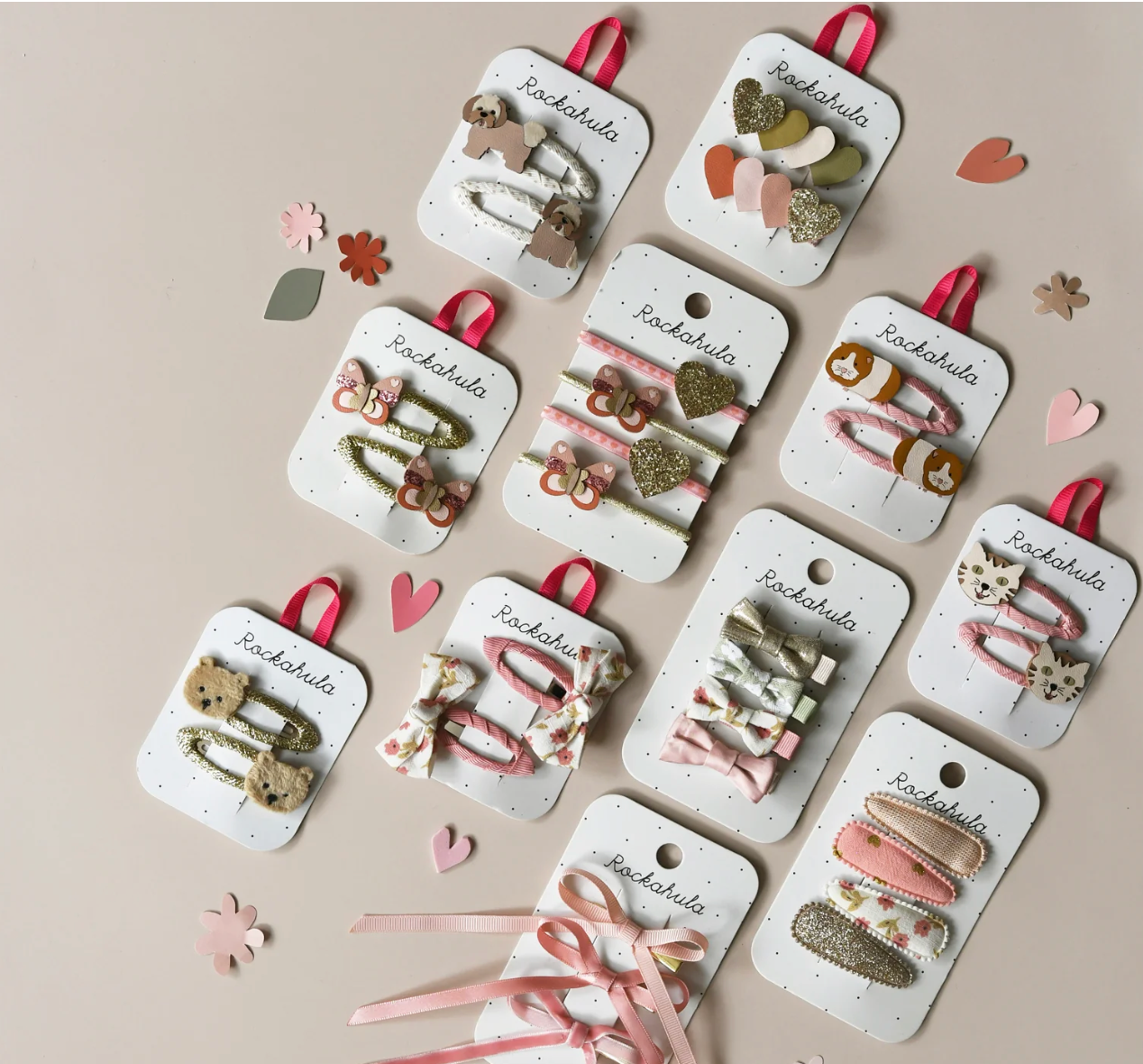 Set little hearts a-flutter with these adorable patchwork butterfly clips! Two delicate butterflys are sat upon gold ribbon wrapped snap clips. Made with neutral and dusky pink colours, they are the perfect companion for a flutter in the garden!