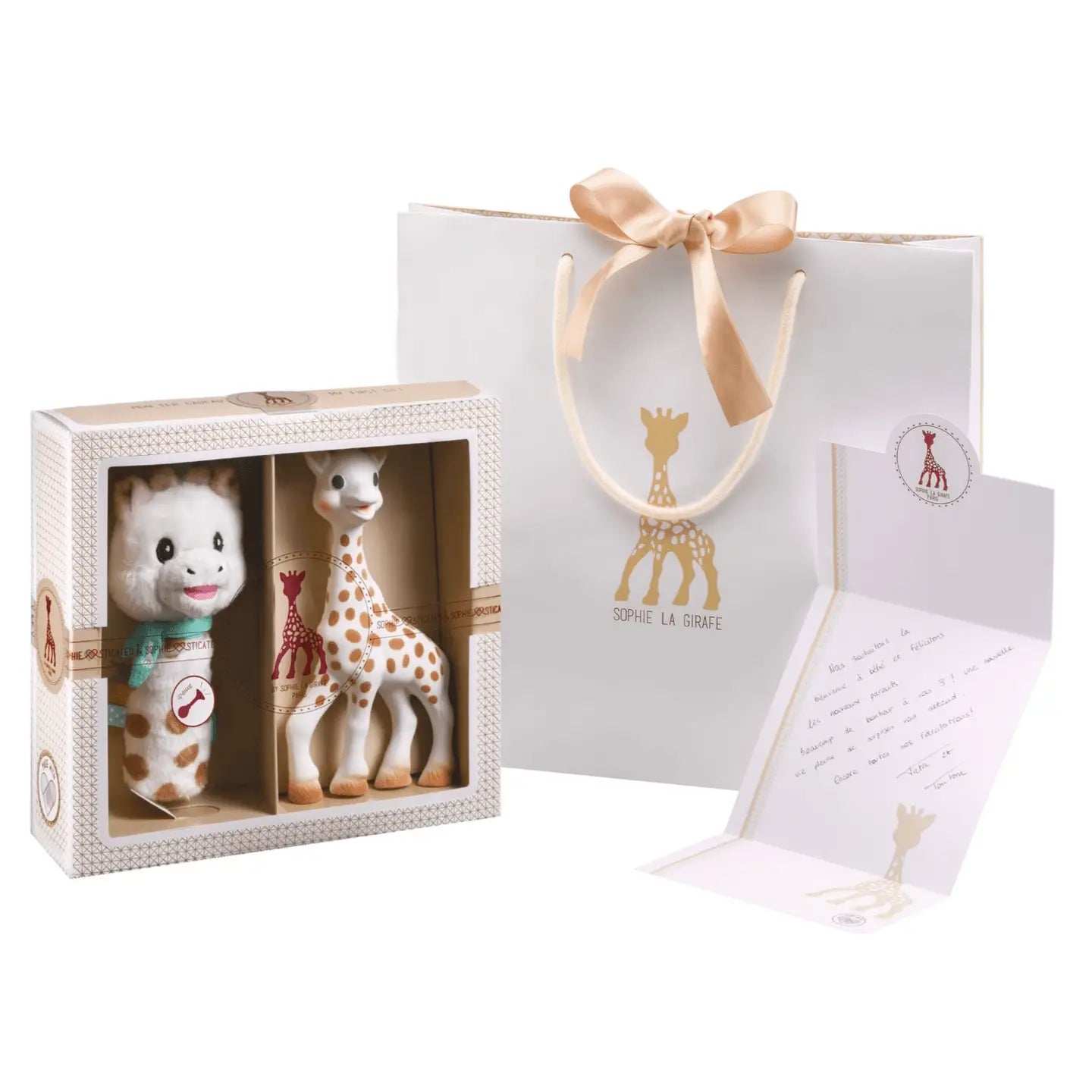 Packaged in a premium gift box to give a contemporary, modern and sophisticated look. Each set comes with its own Sophie la girafe branded gift bag and a gift card, for including your own special message. This really is the complete first gift set!